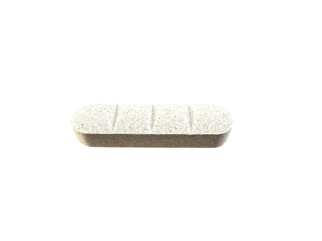 Podlouhlá tableta má tři rýhy, které ji umožňují rozdělit na čtyři části.